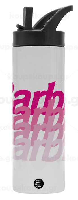 Barbie repeat, Μεταλλικό παγούρι θερμός με καλαμάκι & χειρολαβή, ανοξείδωτο ατσάλι (Stainless steel 304), διπλού τοιχώματος, 600ml
