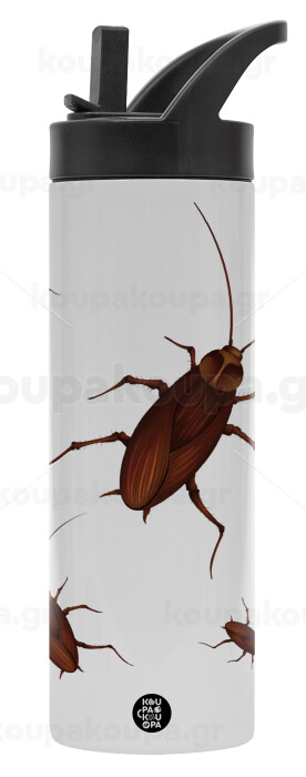 Κατσαρίδα, Μεταλλικό παγούρι θερμός με καλαμάκι & χειρολαβή, ανοξείδωτο ατσάλι (Stainless steel 304), διπλού τοιχώματος, 600ml