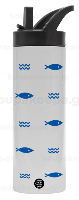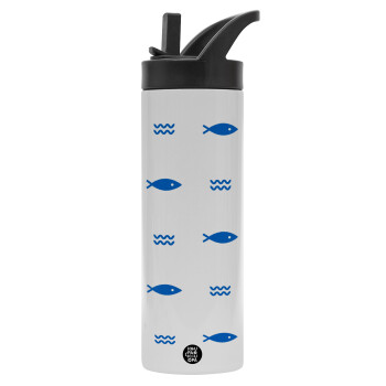 Ψαράκια, Μεταλλικό παγούρι θερμός με καλαμάκι & χειρολαβή, ανοξείδωτο ατσάλι (Stainless steel 304), διπλού τοιχώματος, 600ml