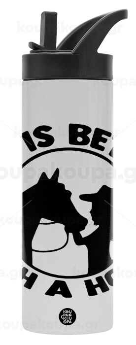 Life is Better with a Horse, Μεταλλικό παγούρι θερμός με καλαμάκι & χειρολαβή, ανοξείδωτο ατσάλι (Stainless steel 304), διπλού τοιχώματος, 600ml