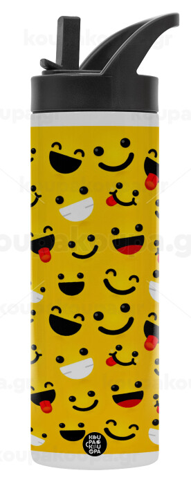 Smilies , Μεταλλικό παγούρι θερμός με καλαμάκι & χειρολαβή, ανοξείδωτο ατσάλι (Stainless steel 304), διπλού τοιχώματος, 600ml