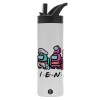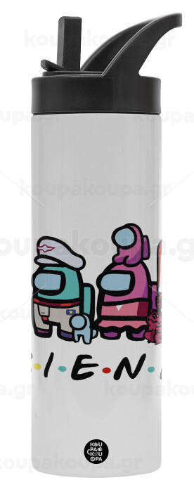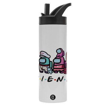 Among US Friends, Μεταλλικό παγούρι θερμός με καλαμάκι & χειρολαβή, ανοξείδωτο ατσάλι (Stainless steel 304), διπλού τοιχώματος, 600ml
