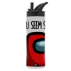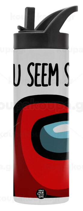 Among US, you seem sus, Μεταλλικό παγούρι θερμός με καλαμάκι & χειρολαβή, ανοξείδωτο ατσάλι (Stainless steel 304), διπλού τοιχώματος, 600ml