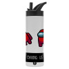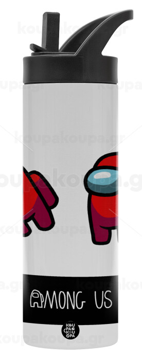 Among US, Μεταλλικό παγούρι θερμός με καλαμάκι & χειρολαβή, ανοξείδωτο ατσάλι (Stainless steel 304), διπλού τοιχώματος, 600ml