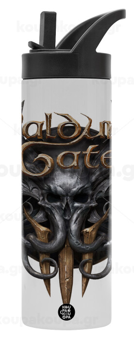 Baldur's Gate, Μεταλλικό παγούρι θερμός με καλαμάκι & χειρολαβή, ανοξείδωτο ατσάλι (Stainless steel 304), διπλού τοιχώματος, 600ml