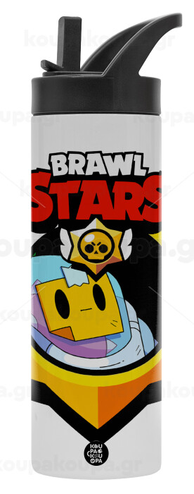 Brawl Stars Sprout, Μεταλλικό παγούρι θερμός με καλαμάκι & χειρολαβή, ανοξείδωτο ατσάλι (Stainless steel 304), διπλού τοιχώματος, 600ml