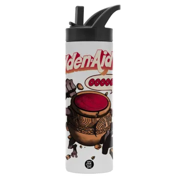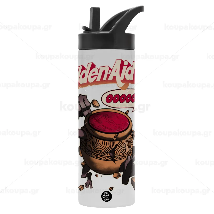 Elden-Aid, Elden Ring inspired , Μεταλλικό παγούρι θερμός με καλαμάκι & χειρολαβή, ανοξείδωτο ατσάλι (Stainless steel 304), διπλού τοιχώματος, 600ml
