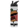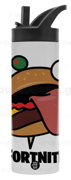 Fortnite Durr Burger, Μεταλλικό παγούρι θερμός με καλαμάκι & χειρολαβή, ανοξείδωτο ατσάλι (Stainless steel 304), διπλού τοιχώματος, 600ml