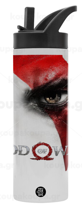 God of war Stratos, Μεταλλικό παγούρι θερμός με καλαμάκι & χειρολαβή, ανοξείδωτο ατσάλι (Stainless steel 304), διπλού τοιχώματος, 600ml