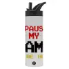 I paused my game to be here, Μεταλλικό παγούρι θερμός με καλαμάκι & χειρολαβή, ανοξείδωτο ατσάλι (Stainless steel 304), διπλού τοιχώματος, 600ml
