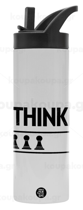I'm thinking, Μεταλλικό παγούρι θερμός με καλαμάκι & χειρολαβή, ανοξείδωτο ατσάλι (Stainless steel 304), διπλού τοιχώματος, 600ml