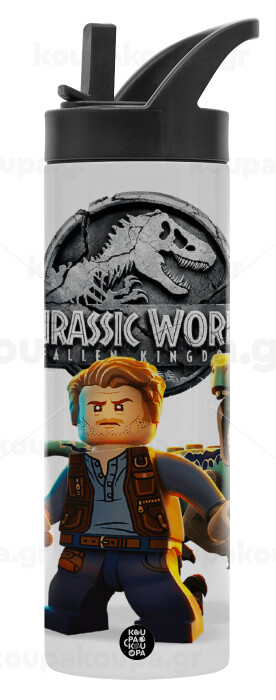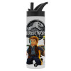 Jurassic world, Μεταλλικό παγούρι θερμός με καλαμάκι & χειρολαβή, ανοξείδωτο ατσάλι (Stainless steel 304), διπλού τοιχώματος, 600ml