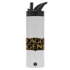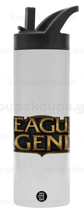 League of Legends LoL, Μεταλλικό παγούρι θερμός με καλαμάκι & χειρολαβή, ανοξείδωτο ατσάλι (Stainless steel 304), διπλού τοιχώματος, 600ml
