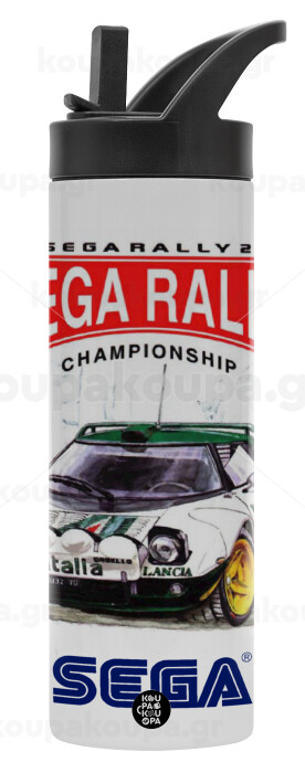 SEGA RALLY 2, Μεταλλικό παγούρι θερμός με καλαμάκι & χειρολαβή, ανοξείδωτο ατσάλι (Stainless steel 304), διπλού τοιχώματος, 600ml