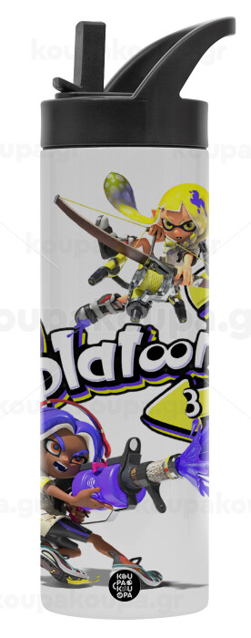 Splatoon 3, Μεταλλικό παγούρι θερμός με καλαμάκι & χειρολαβή, ανοξείδωτο ατσάλι (Stainless steel 304), διπλού τοιχώματος, 600ml