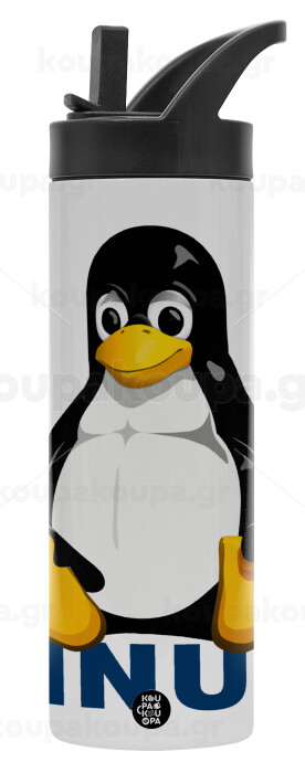 Linux, Μεταλλικό παγούρι θερμός με καλαμάκι & χειρολαβή, ανοξείδωτο ατσάλι (Stainless steel 304), διπλού τοιχώματος, 600ml