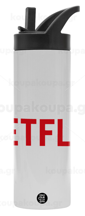 Netflix, Μεταλλικό παγούρι θερμός με καλαμάκι & χειρολαβή, ανοξείδωτο ατσάλι (Stainless steel 304), διπλού τοιχώματος, 600ml