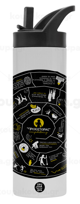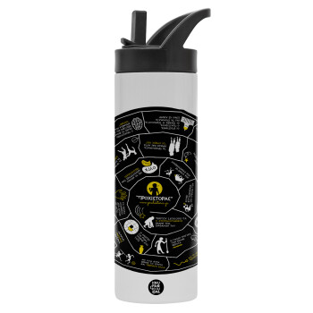 Προχίστορας, Μεταλλικό παγούρι θερμός με καλαμάκι & χειρολαβή, ανοξείδωτο ατσάλι (Stainless steel 304), διπλού τοιχώματος, 600ml
