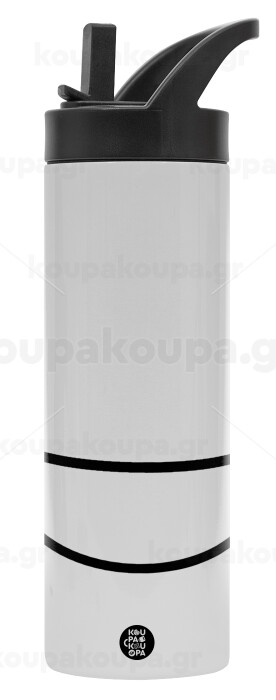 Χαμογέλα, Μεταλλικό παγούρι θερμός με καλαμάκι & χειρολαβή, ανοξείδωτο ατσάλι (Stainless steel 304), διπλού τοιχώματος, 600ml