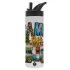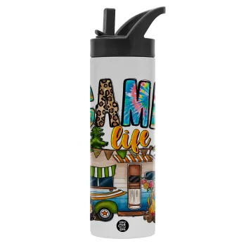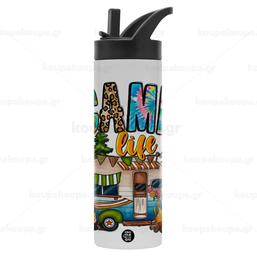 Camp Life, Μεταλλικό παγούρι θερμός με καλαμάκι & χειρολαβή, ανοξείδωτο ατσάλι (Stainless steel 304), διπλού τοιχώματος, 600ml
