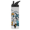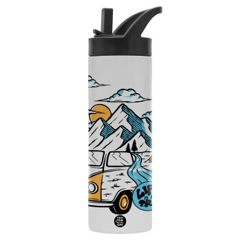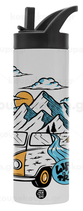 Life is a trip, Μεταλλικό παγούρι θερμός με καλαμάκι & χειρολαβή, ανοξείδωτο ατσάλι (Stainless steel 304), διπλού τοιχώματος, 600ml