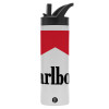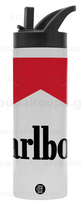 Marlboro, Μεταλλικό παγούρι θερμός με καλαμάκι & χειρολαβή, ανοξείδωτο ατσάλι (Stainless steel 304), διπλού τοιχώματος, 600ml