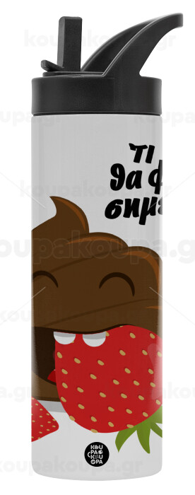 Τι θα φάμε σημερα???, Μεταλλικό παγούρι θερμός με καλαμάκι & χειρολαβή, ανοξείδωτο ατσάλι (Stainless steel 304), διπλού τοιχώματος, 600ml