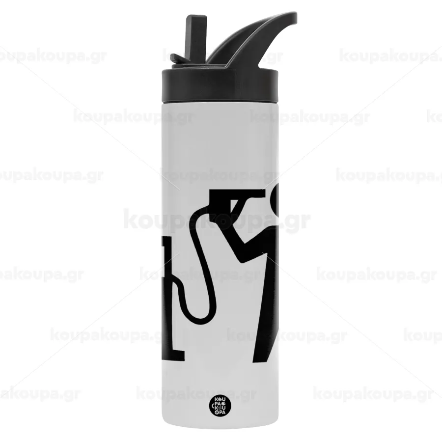 Fuel crisis, Μεταλλικό παγούρι θερμός με καλαμάκι & χειρολαβή, ανοξείδωτο ατσάλι (Stainless steel 304), διπλού τοιχώματος, 600ml