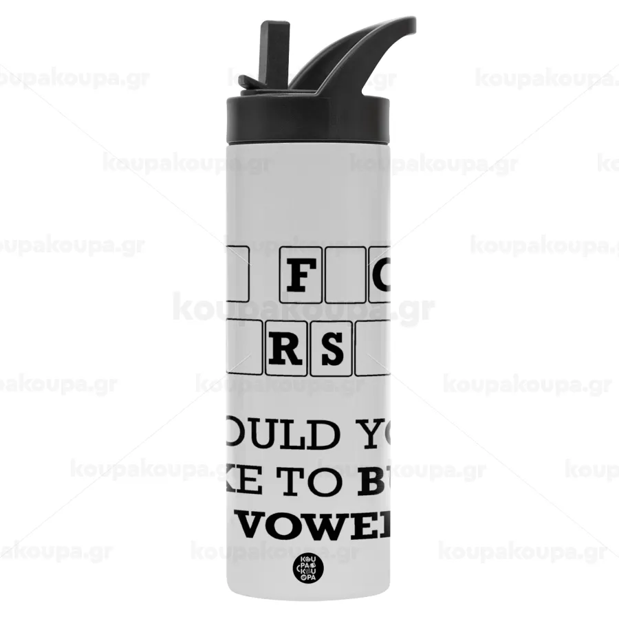 Wheel of fortune, go f..k yourself, Μεταλλικό παγούρι θερμός με καλαμάκι & χειρολαβή, ανοξείδωτο ατσάλι (Stainless steel 304), διπλού τοιχώματος, 600ml