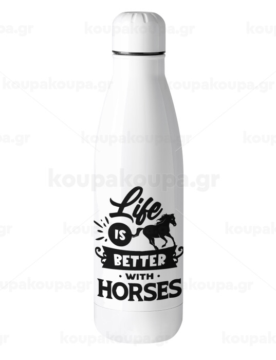 Life is Better with a Horses, Μεταλλικό παγούρι θερμός (Stainless steel), 500ml