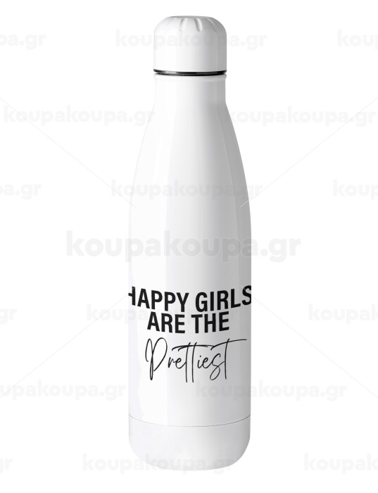 Happy girls are the prettiest, Μεταλλικό παγούρι θερμός (Stainless steel), 500ml