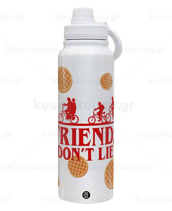 Friends Don't Lie, Stranger Things, Θερμός 1L Ανοξείδωτο με Βάση Κινητού & Διπλά Τοιχώματα
