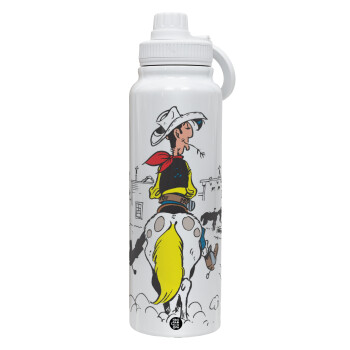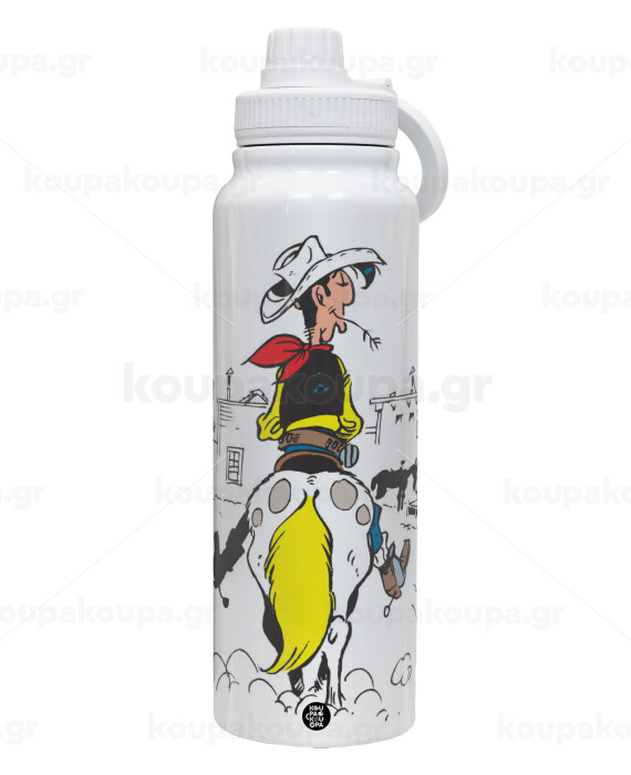 Λούκυ Λουκ comic, Θερμός 1L Ανοξείδωτο με Βάση Κινητού & Διπλά Τοιχώματα