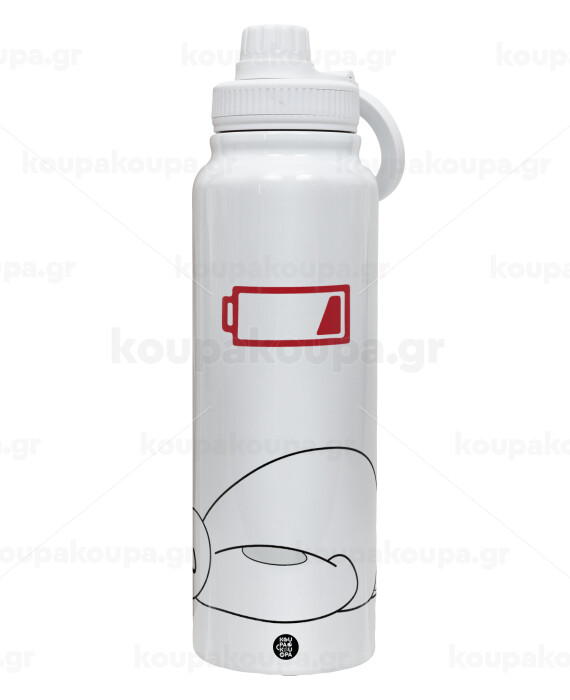 Baymax battery low, Θερμός 1L Ανοξείδωτο με Βάση Κινητού & Διπλά Τοιχώματα