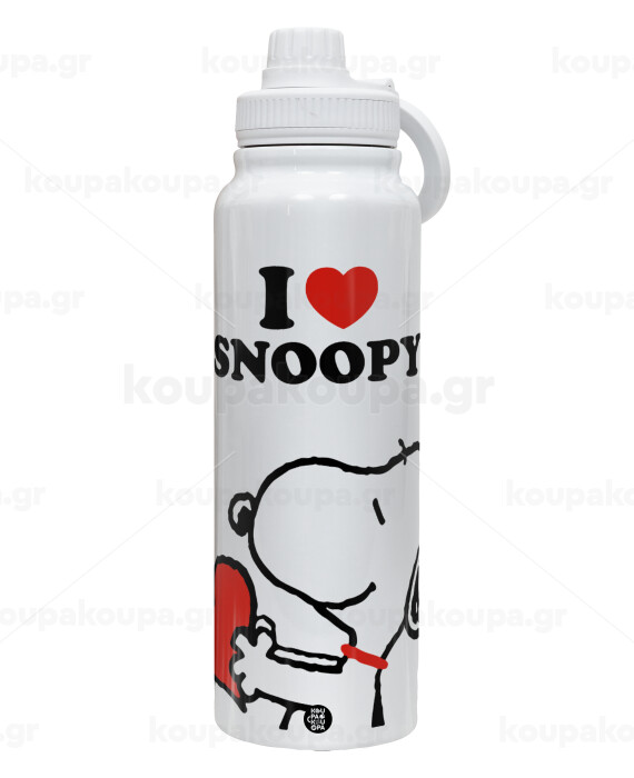 I LOVE SNOOPY, Θερμός 1L Ανοξείδωτο με Βάση Κινητού & Διπλά Τοιχώματα
