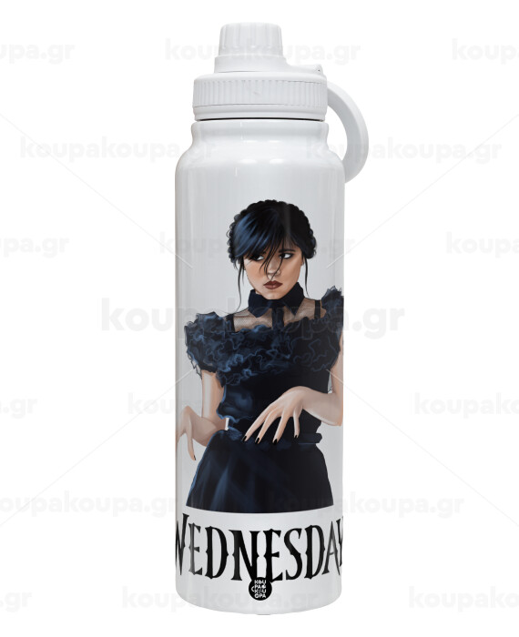 Wednesday Adams, dance with hands, Θερμός 1L Ανοξείδωτο με Βάση Κινητού & Διπλά Τοιχώματα