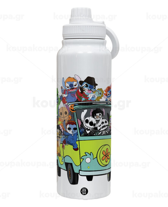 Stitch Halloween scooby car, Θερμός 1L Ανοξείδωτο με Βάση Κινητού & Διπλά Τοιχώματα