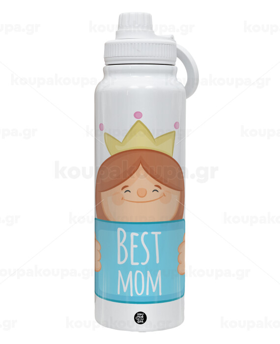 Best mom Princess, Θερμός 1L Ανοξείδωτο με Βάση Κινητού & Διπλά Τοιχώματα