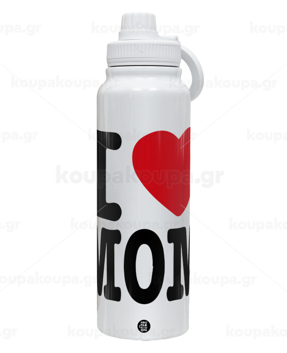 I LOVE MOM, Θερμός 1L Ανοξείδωτο με Βάση Κινητού & Διπλά Τοιχώματα