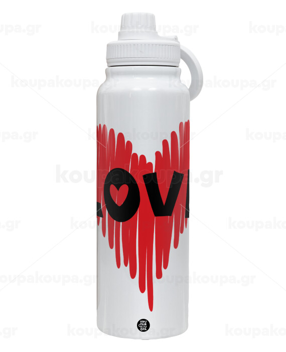 I Love You red heart, Θερμός 1L Ανοξείδωτο με Βάση Κινητού & Διπλά Τοιχώματα