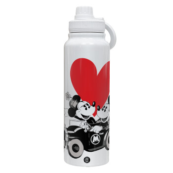 Mickey & Minnie love car, Θερμός 1L Ανοξείδωτο με Βάση Κινητού & Διπλά Τοιχώματα