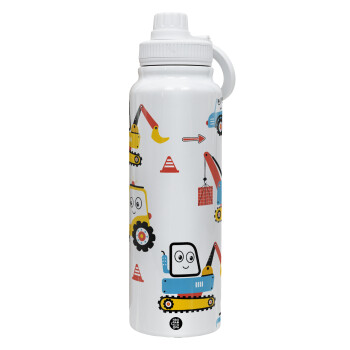Hand drawing building truck, Θερμός 1L Ανοξείδωτο με Βάση Κινητού & Διπλά Τοιχώματα