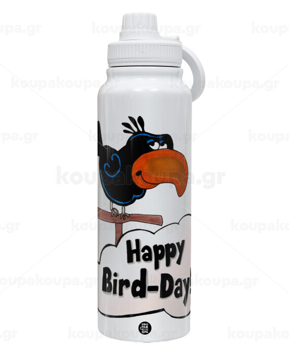Happy Bird Day, Θερμός 1L Ανοξείδωτο με Βάση Κινητού & Διπλά Τοιχώματα