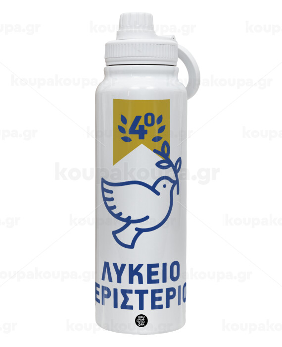 Έμβλημα Σχολικό μπλε/χρυσό περιστέρι, Θερμός 1L Ανοξείδωτο με Βάση Κινητού & Διπλά Τοιχώματα