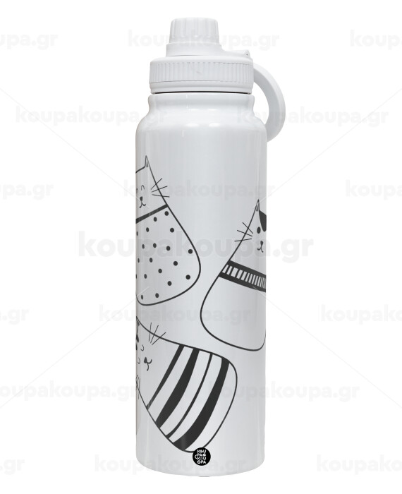 Cute cats, Θερμός 1L Ανοξείδωτο με Βάση Κινητού & Διπλά Τοιχώματα