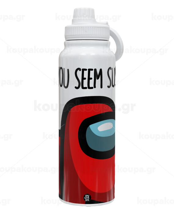 Among US, you seem sus, Θερμός 1L Ανοξείδωτο με Βάση Κινητού & Διπλά Τοιχώματα