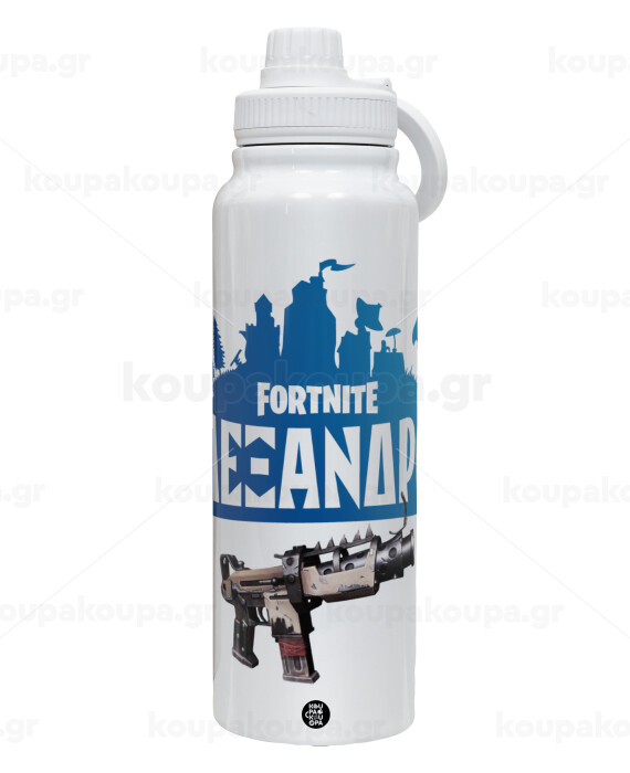 Fortnite with gun με το όνομα σου, Θερμός 1L Ανοξείδωτο με Βάση Κινητού & Διπλά Τοιχώματα