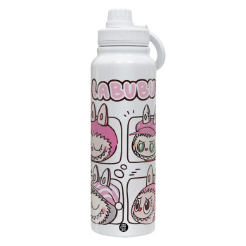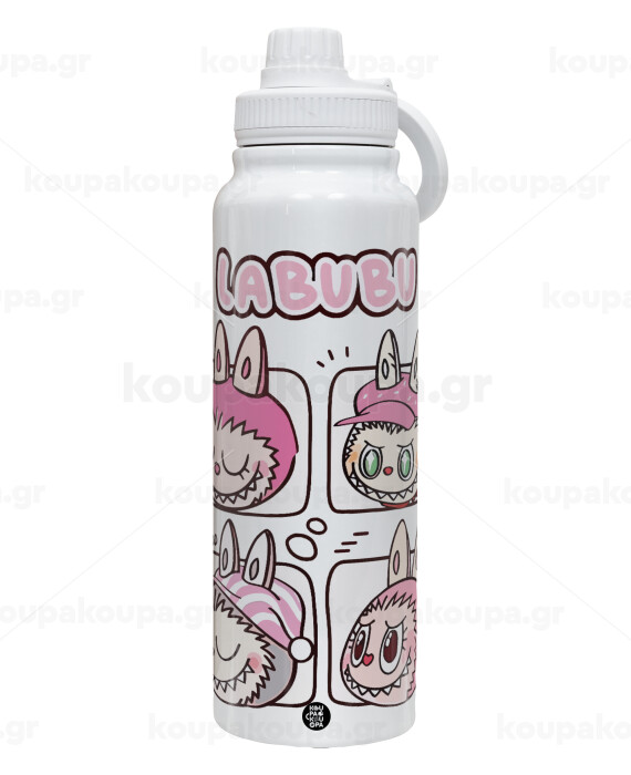 Labubu pink, Θερμός 1L Ανοξείδωτο με Βάση Κινητού & Διπλά Τοιχώματα