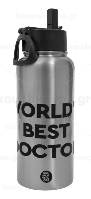 World's Best Doctor, Μεταλλικό παγούρι θερμός Silver με καλαμάκι και χερούλι (Stainless steel), διπλού τοιχώματος, 950ml
