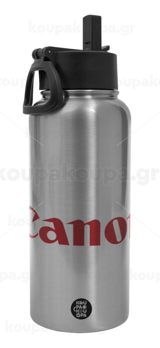 Canon, Μεταλλικό παγούρι θερμός Silver με καλαμάκι και χερούλι (Stainless steel), διπλού τοιχώματος, 950ml